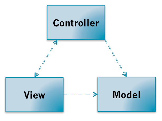 MVC出了把应用程序分成View、Model层,还额外的加了一个Controller层,它的职责为进行Model和View之间的协作(路由、输入预处理等)的应用逻辑(application logic);Model进行处理业务逻辑。Model、View、Controller三个层次的依赖关系如下: