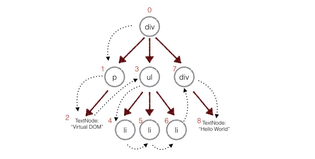 在实际的代码中,会对新旧两棵树进行一个深度优先的遍历,这样每个节点都会有一个唯一的标记: