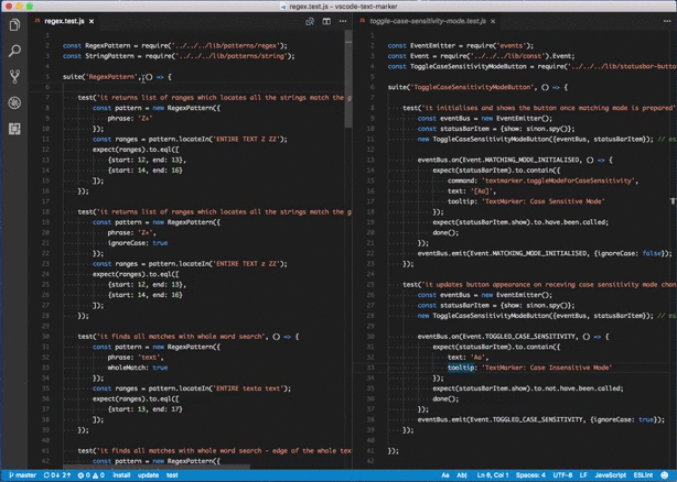 Highlight multiple text patterns with different colors at the same time. Highlighting a single text pattern can be done with the editor's search functionality, but it cannot highlight multiple patterns at the same time, and this is where this extension comes handy.