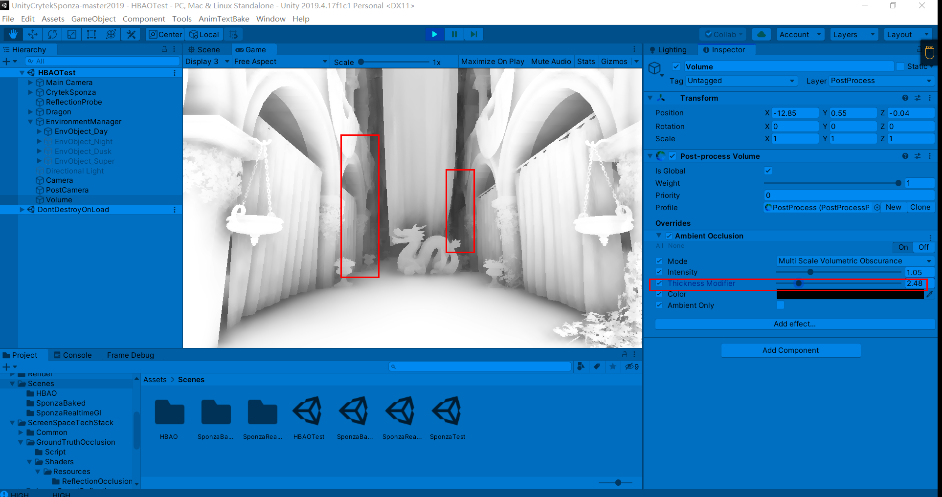 实时的AO物理的正确性较差,但对采样方式以及对周围采样区域的计算方式的优化可以提升直观的视觉体验或者生成AO的速度,相对于静态烘焙的AO,实时AO有了更好的交互,但是随着人物和周围建筑距离的变化,AO的误差也可能增加,造成AO区域的抖动或整个场景过暗情况。
