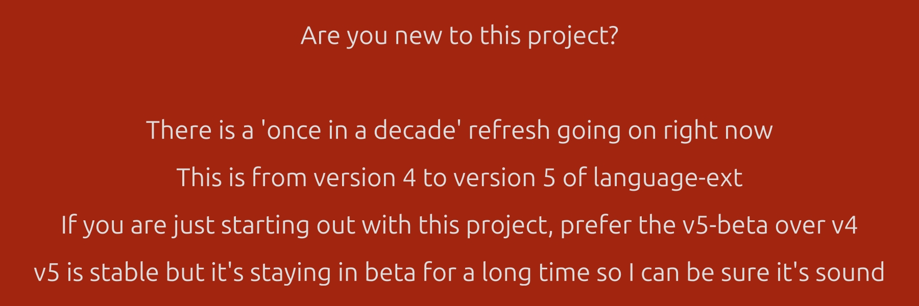 My goal with this library is very much to create a whole new community within the larger C# community. This community is not constrained by the dogma of the past or by the norms of C#. It understands that the OOP approach to programming has some problems and tries to address them head-on.