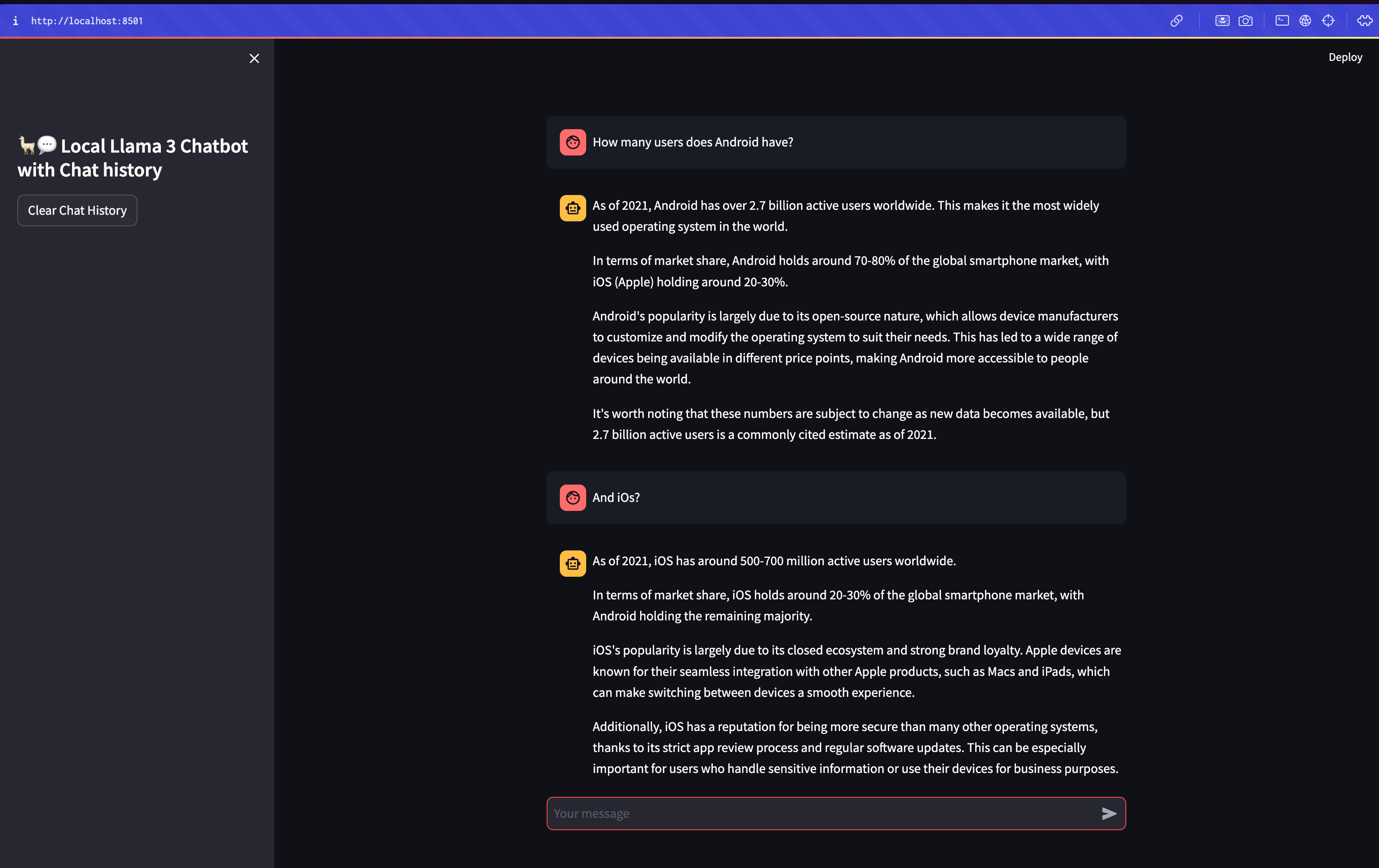 Chat UI for local offline Llama3 Model to chat with.