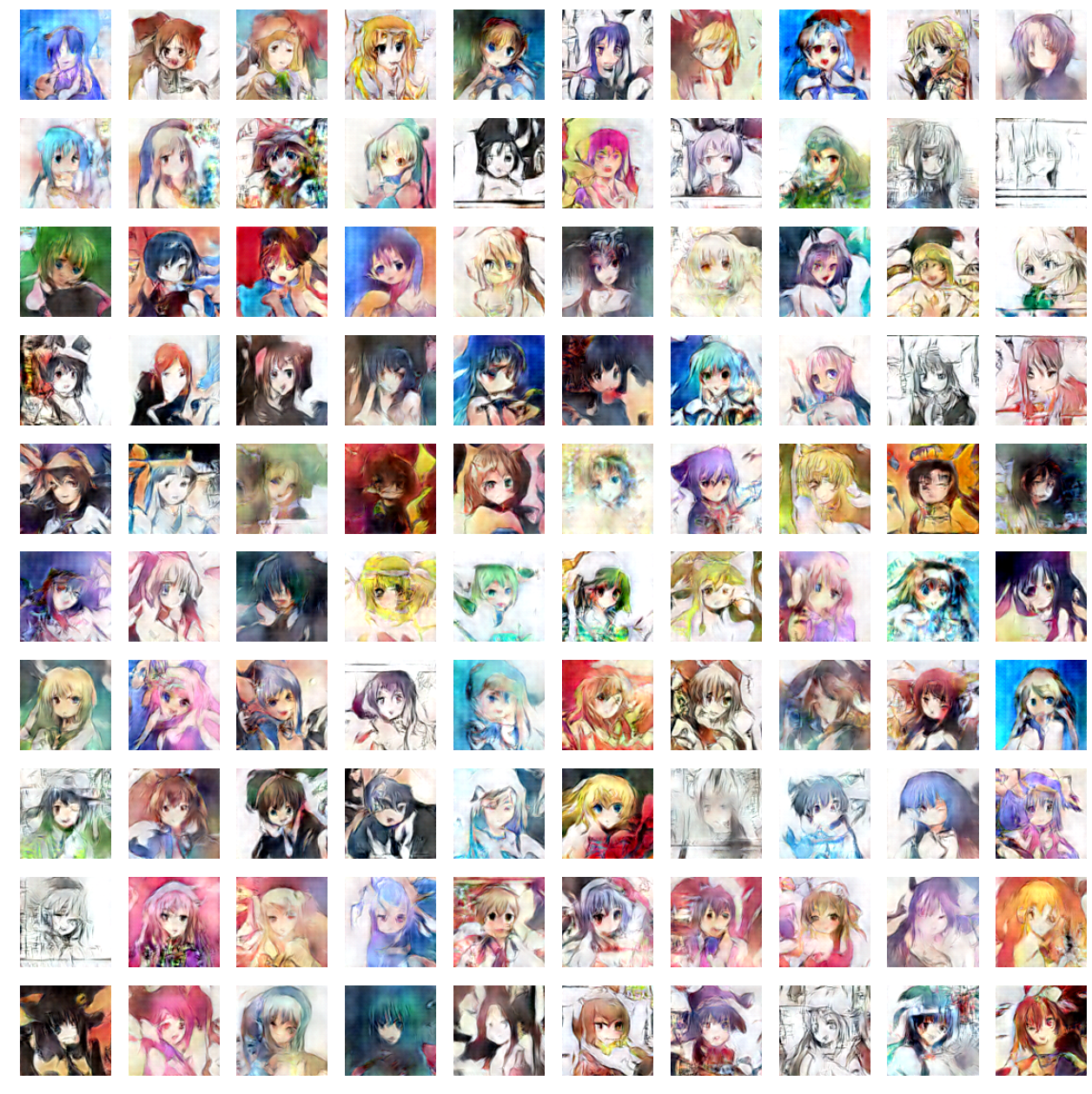 20万枚の顔イラスト画像で約3時間学習を行った結果(GTX 970使用)。
