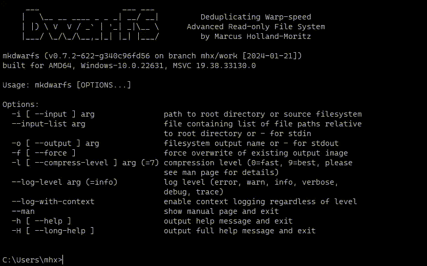 $ mkdwarfs -i /path/to/input/dir -o /path/to/image.dwarfs