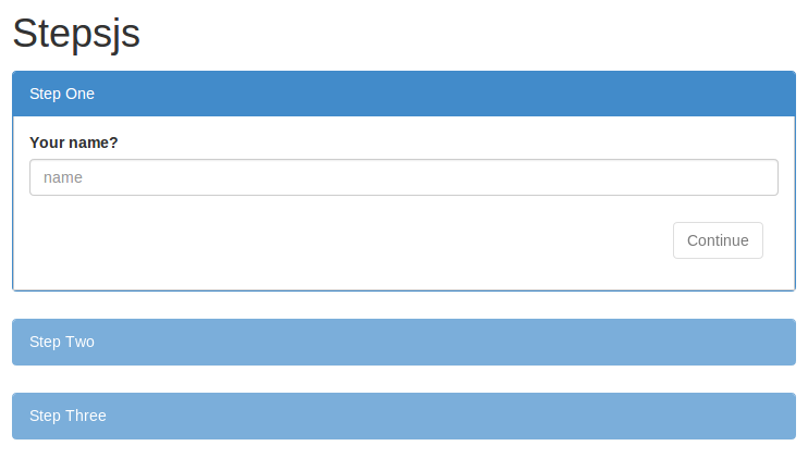Essentially the way stepsjs works is by using handlesbarsjs templates and a configuration object that populates the steps within the passed element from the jQuery selector.