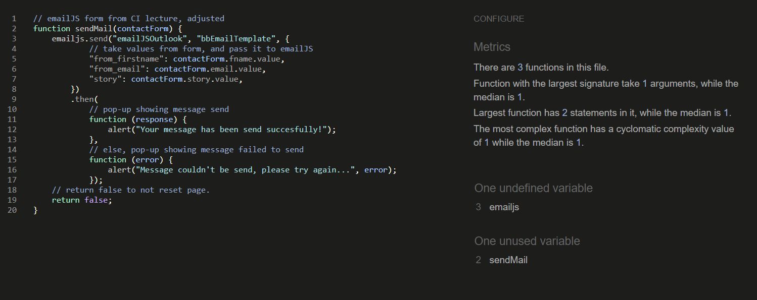 As I used ES6 JavaScript, I had to add/*jshint esversion: 6 */to my code, as comment on top. Since adding this, there are three warnings left. - Unnecessary semicolon