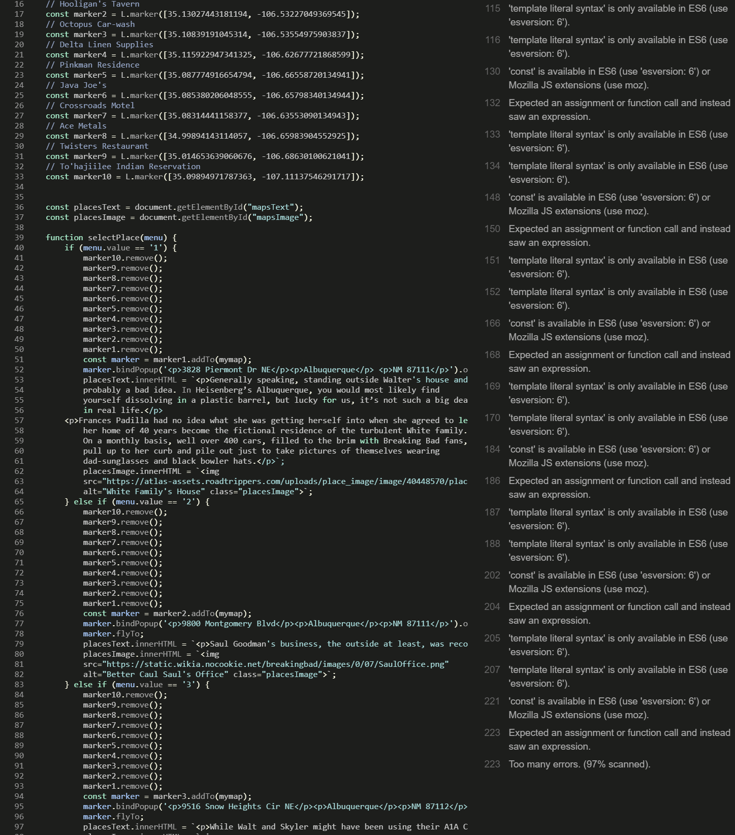 - I incorporated several places where Breaking Bad has been recorded, and, you can select from a dropdown, and, it then populates a map, with location, and further, it also adds an image and small description about the location itself.