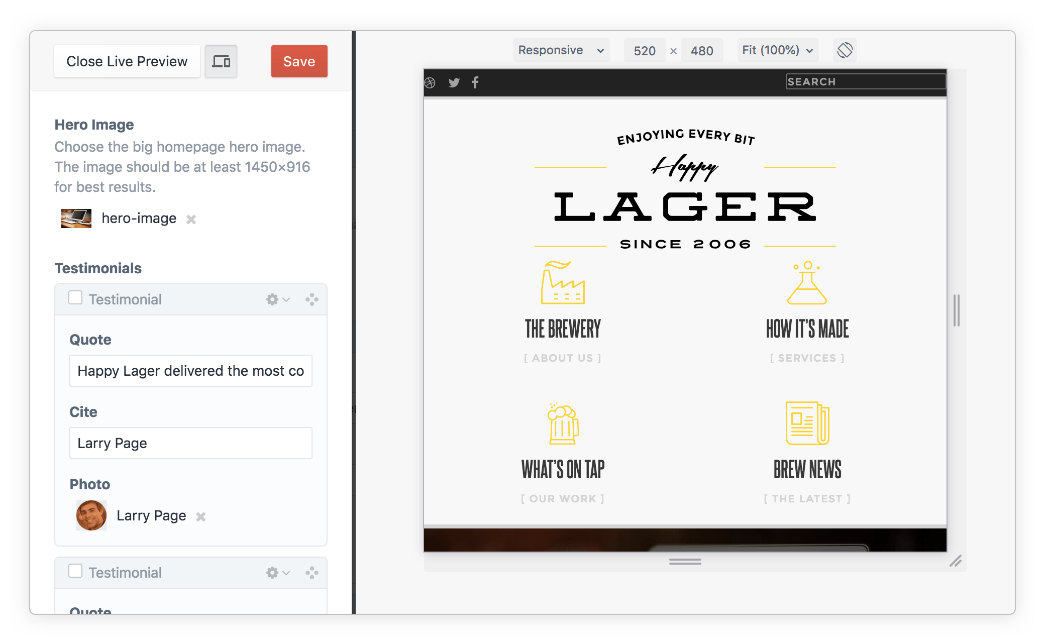- A useful tool for testing your site's responsive layout directly in Live Preview.