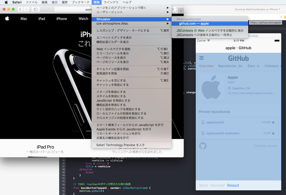Mac版Safariを用いることでiOSのSafariのインスペクタを表示することができます。 また、このインスペクタをSafari以外のアプリのWebViewでも利用することができます。