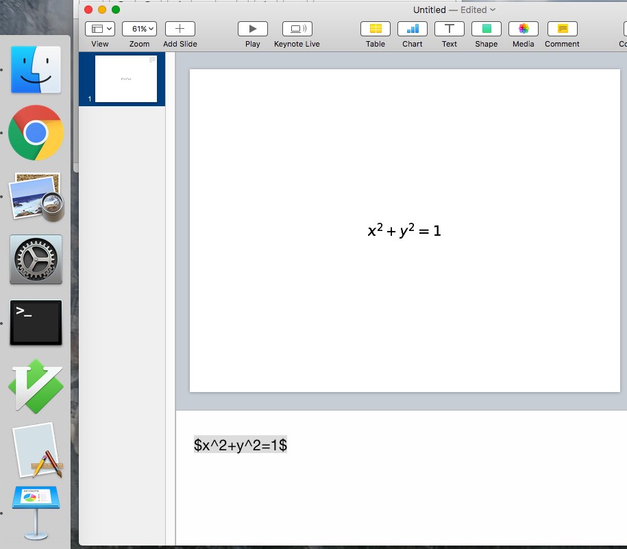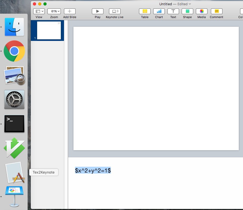 1. Select any valid latex snippet from inside Keynote, e.g., from your Presenter notes.