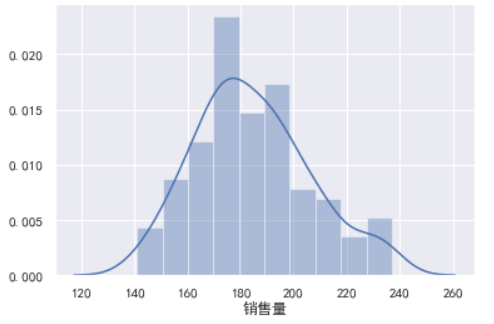 #分组,组距为10,组数为10 bins_list = pd.cut(df['销售量'],bins=range(140,240,10))