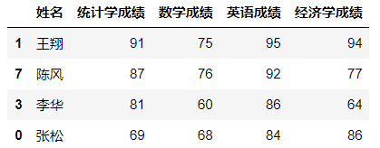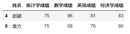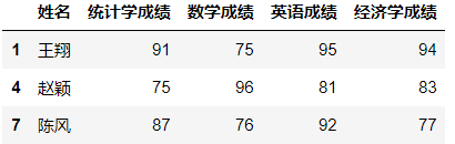 df[(df['统计学成绩'] > 70) & (df['数学成绩'] > 70) & (df['英语成绩'] > 70) & (df['经济学成绩'] > 70)]