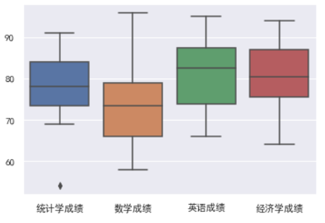 df = pd.read_excel('data/3.数据的图表展示/例题/例3.1.xlsx') #导入数据 sns.boxplot(data=df);