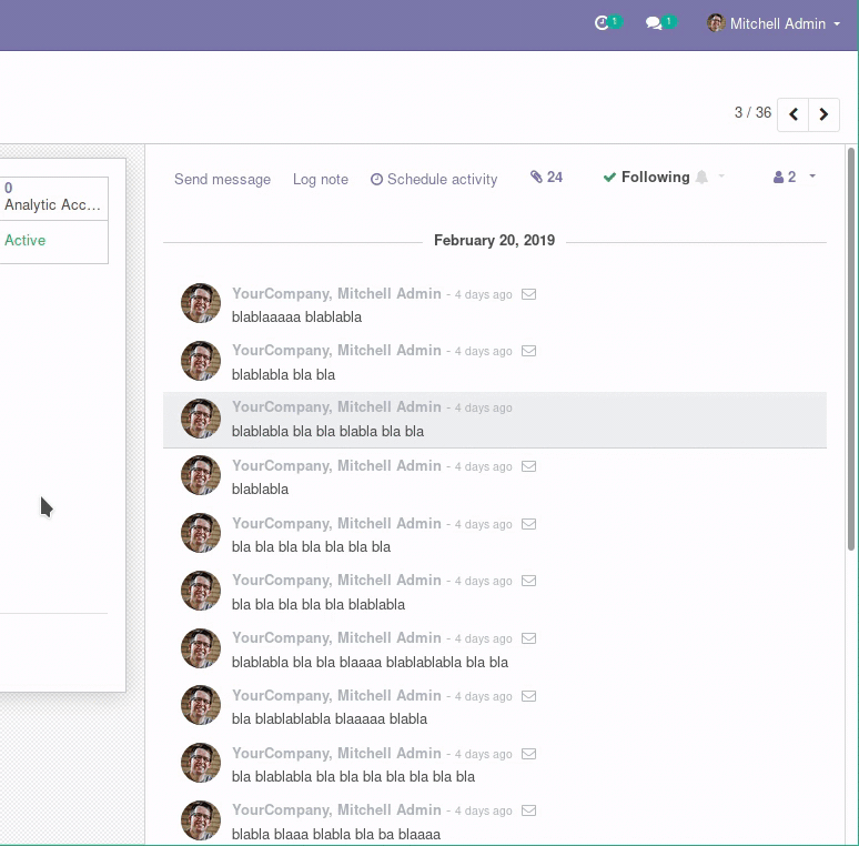 - To view the full experience in a device, the page must be loaded with the device screen size. This means that, if you change the size of your browser, you should reload the web client to get the full experience for that new size. This is Odoo's own limitation.