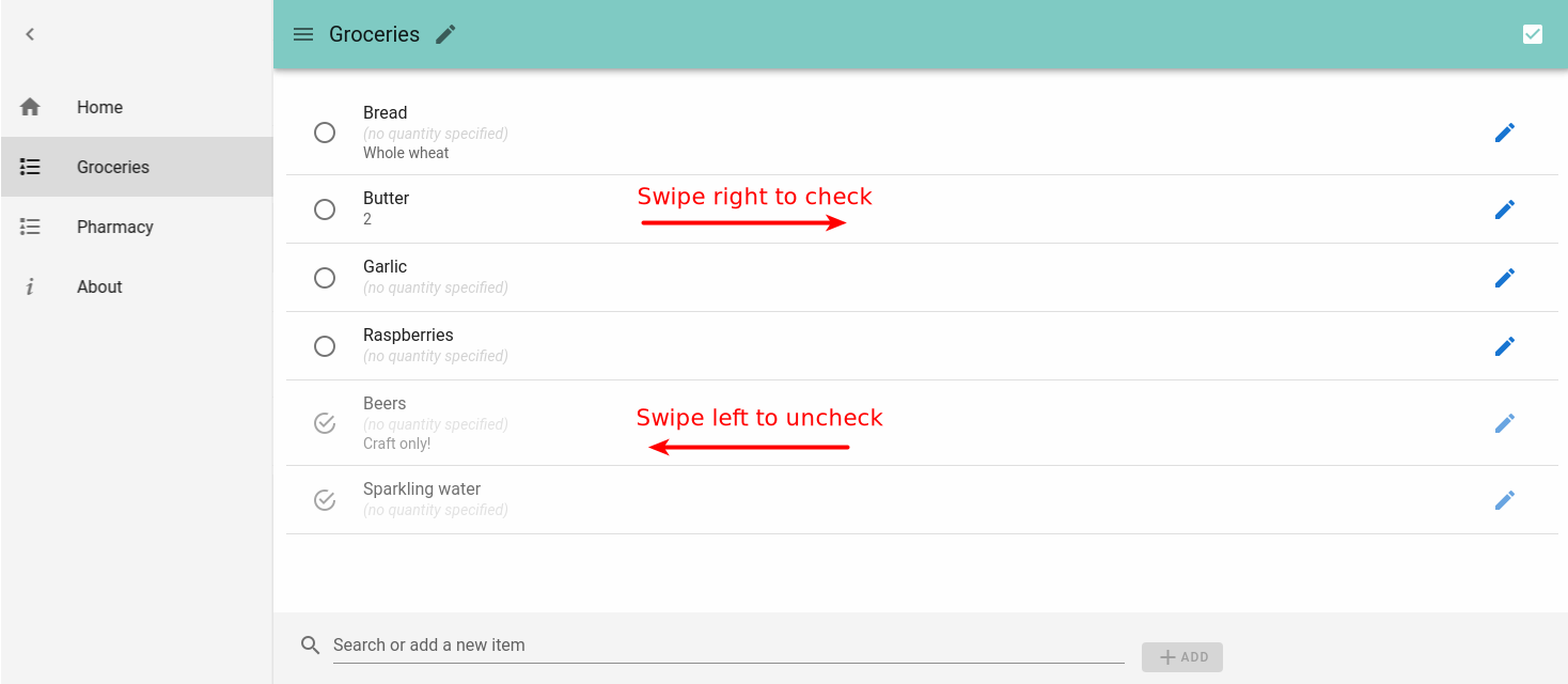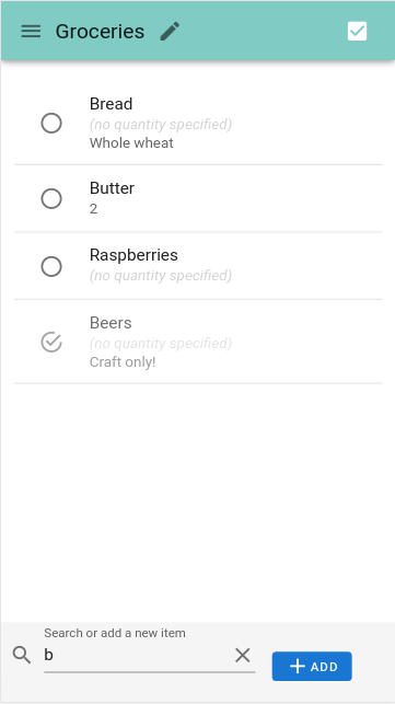 - 2 display modes for items (unchecked only / checked only, sorted by check time)