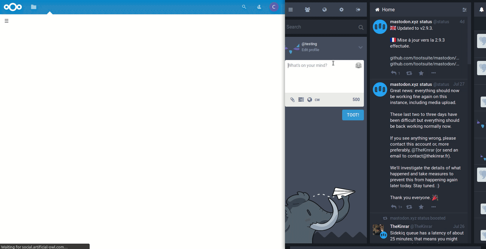 - If the recipient is currently logged, a notification should be visible on Nextcloud