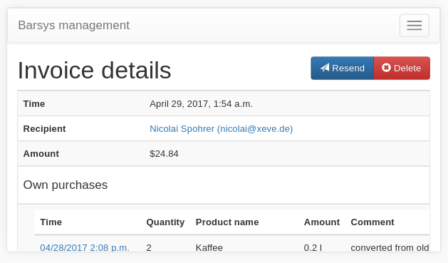 http://server_address/admin/with the default admin account (admin@example.com, passwordexample) to create more users, categories, products etc. and understand pybarsys!