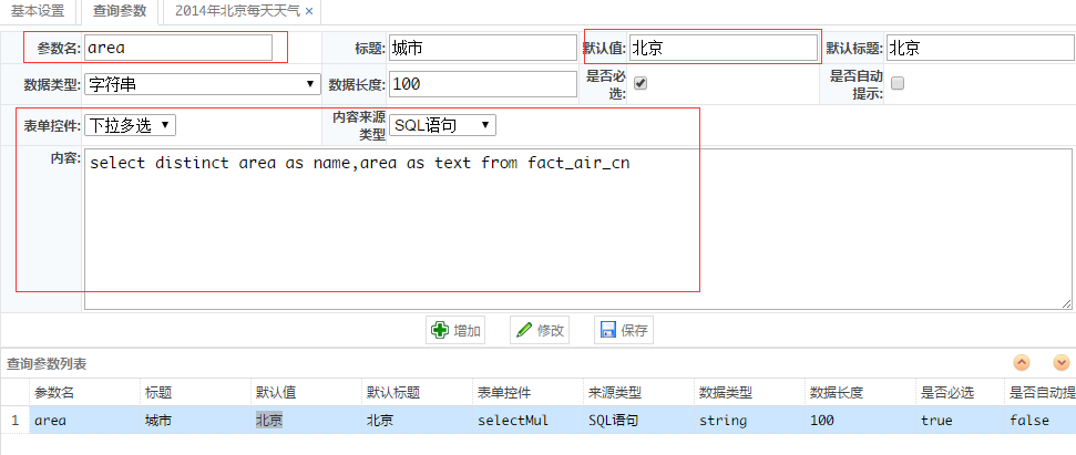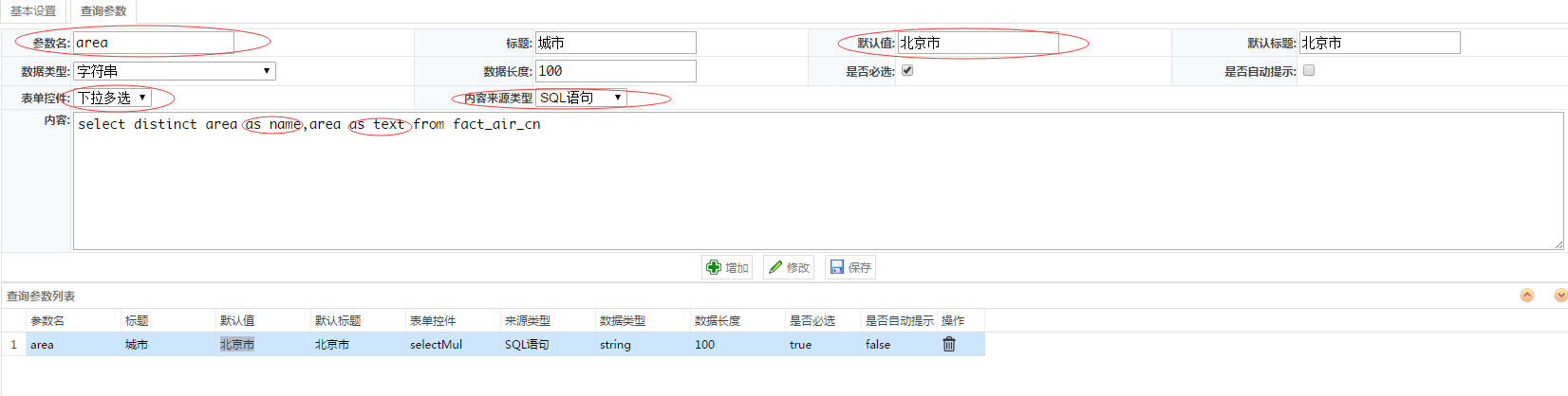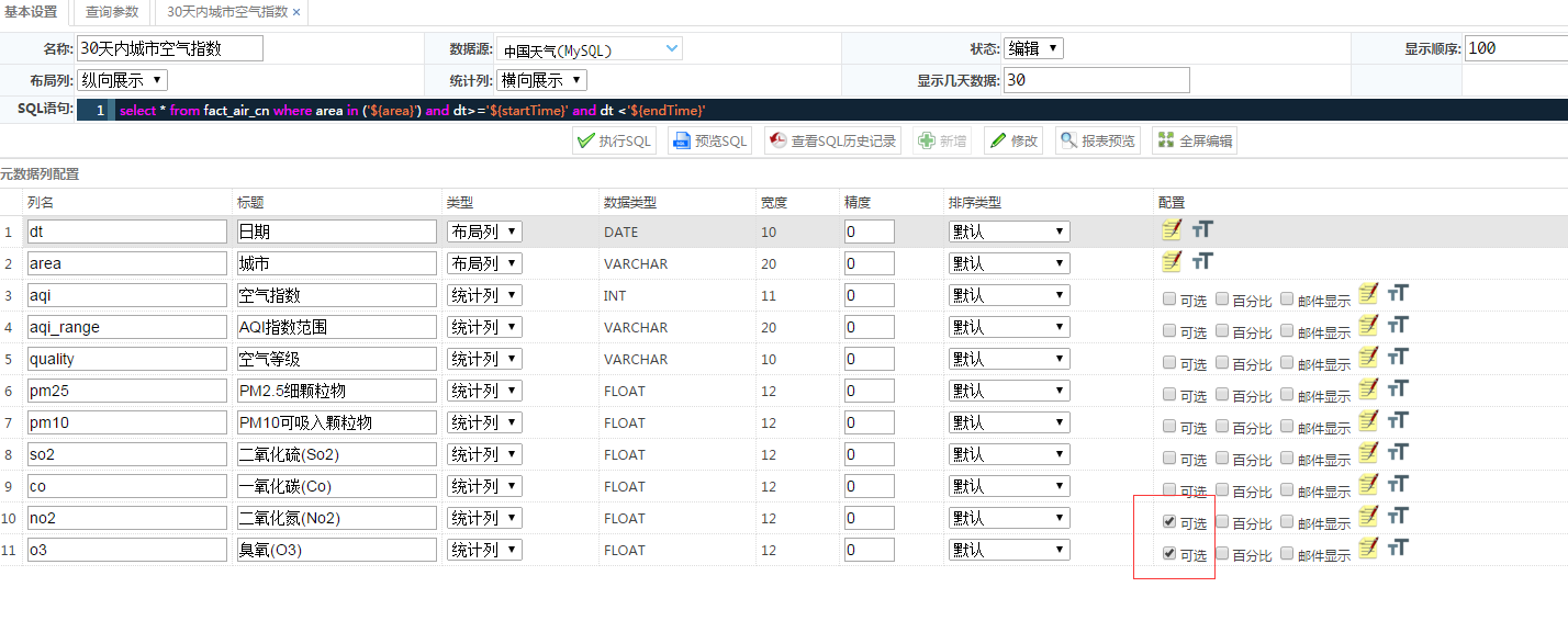 有时候报表需要根据指定条件动态生成,如要查看不同城市空气质量情况,这个时候,我就需要创建一个查询参数变量。