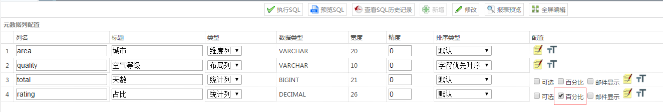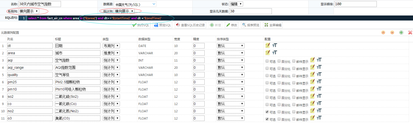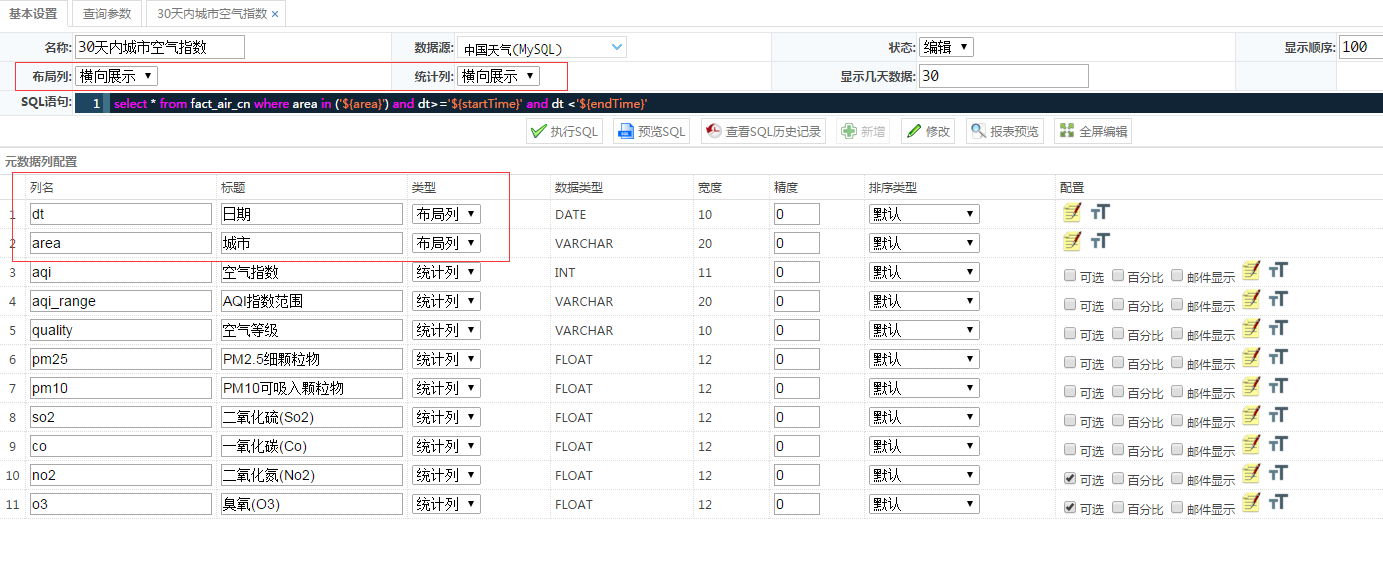 配置管理主要于在制作报表时自动匹配一些常用的列名对应的中文描述。如:dt,date(日期)、title(标题)等。