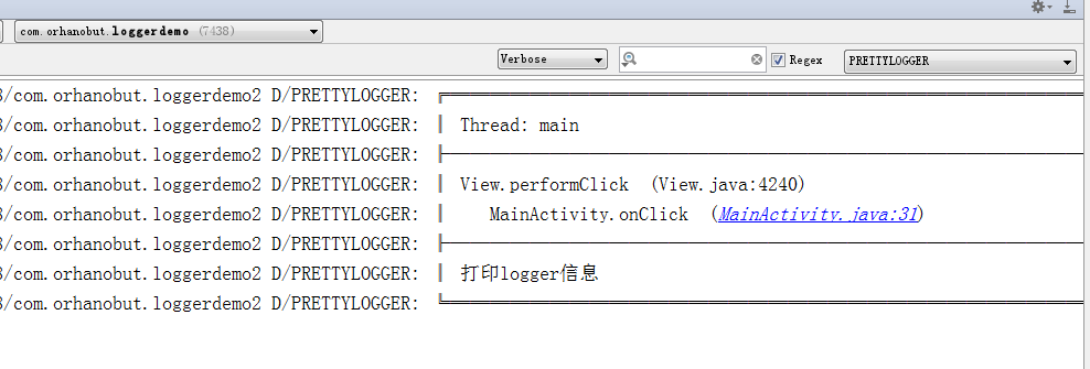 Logger.d("打印logger信息");//输出结果如第一张 运行效果图