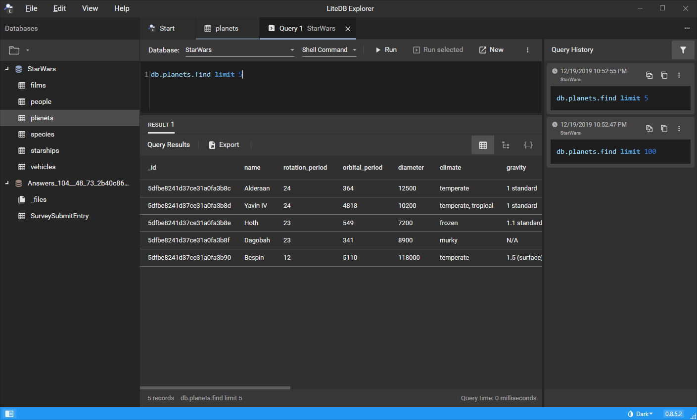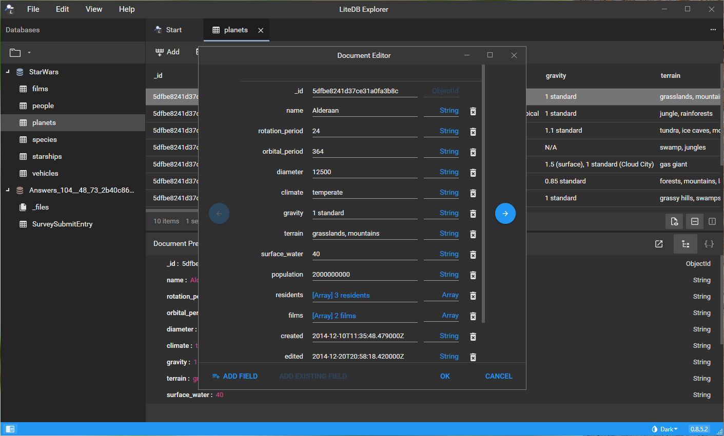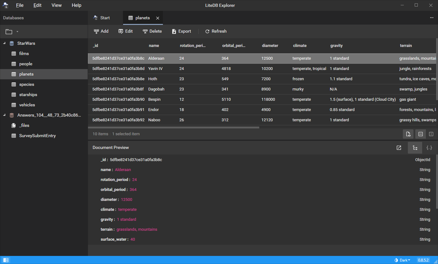 Graphical editor for LiteDB databases.