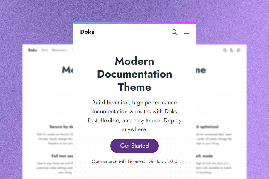 Doks is a Hugo theme helping you build modern documentation websites that are secure, fast, and SEO-ready — by default.
