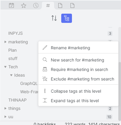 - Open or create a tag page by alt/opt clicking a tag in any note (or the tags view)