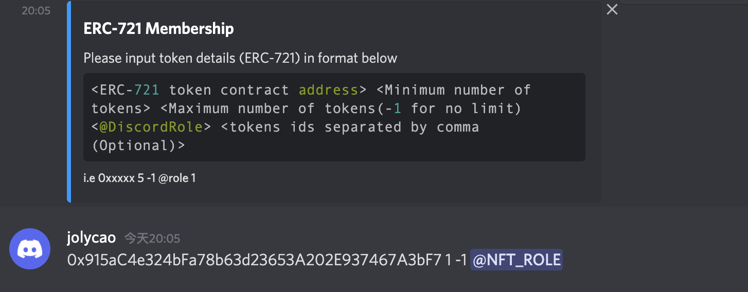 - 在 collabland-config 频道中输入 "!setup role" 进行角色配置
