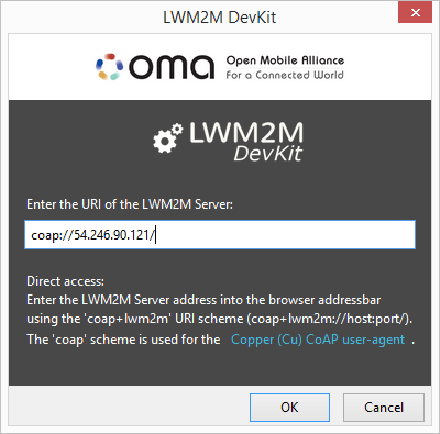 The addressbar: You can also directly enter the URI of an LWM2M Server into the addressbar of the browser: