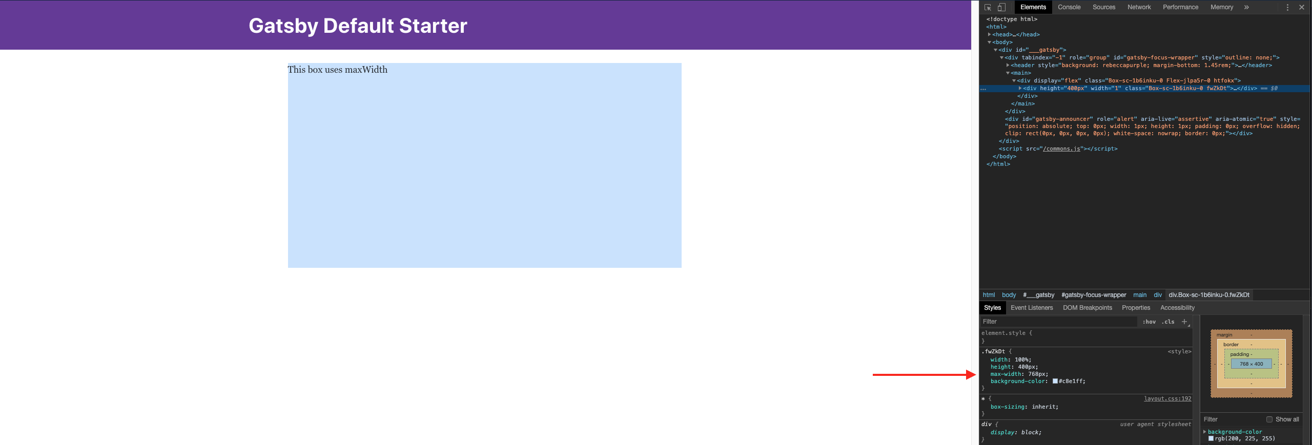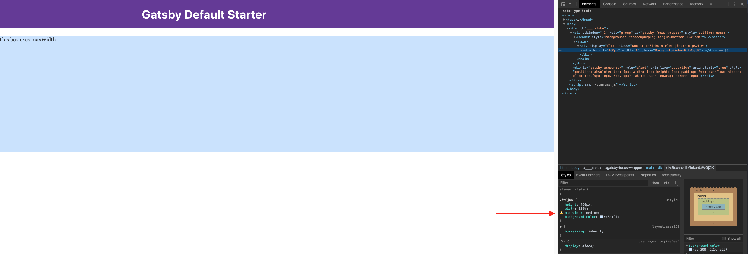 13.1.0and up,maxWidthno longer translates the theme'smaxWidthskeys into its pixel value. In Chrome DevTools, you can see themaxWidthskey string'medium'is used in the CSS instead of the key's value.You can see the