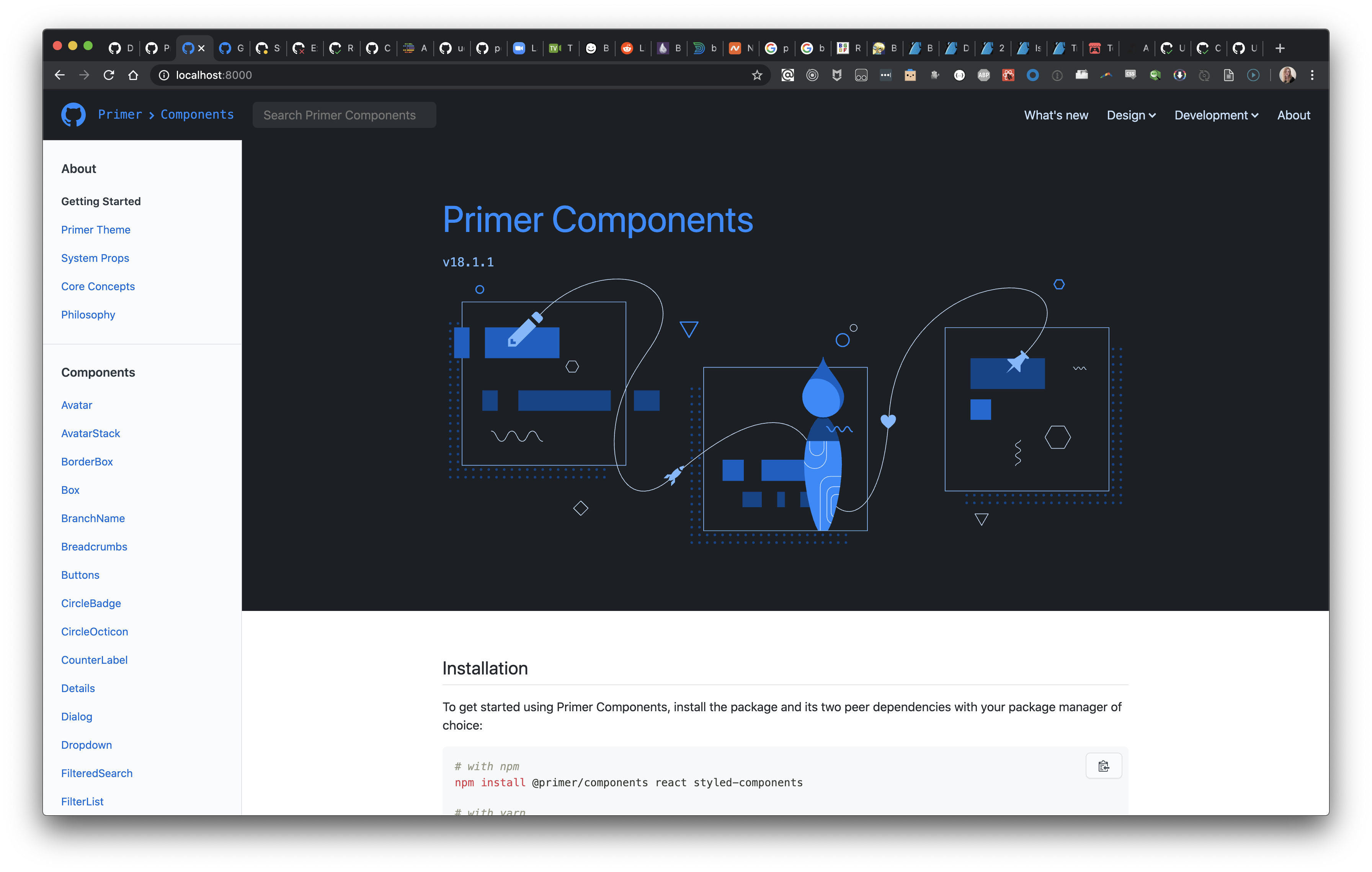 Oh wait, it's the new heading I added 🙈 So you think the Components subheading should still link to the index page, and have some of the original content (and hero image) and the About Link and Getting Started page should lead to the same page (with installation instructions and such)? |