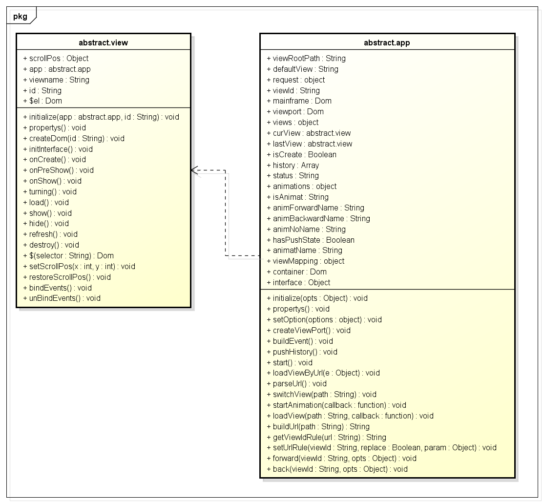 该框架第一期的目标是简单的webapp MVC的实现,现在也基本实现了,app支持hashChange与pushState两种方式做路由加载view,对此有兴趣的同学可以看看helloWord 关于app与页面级View的关系如下: