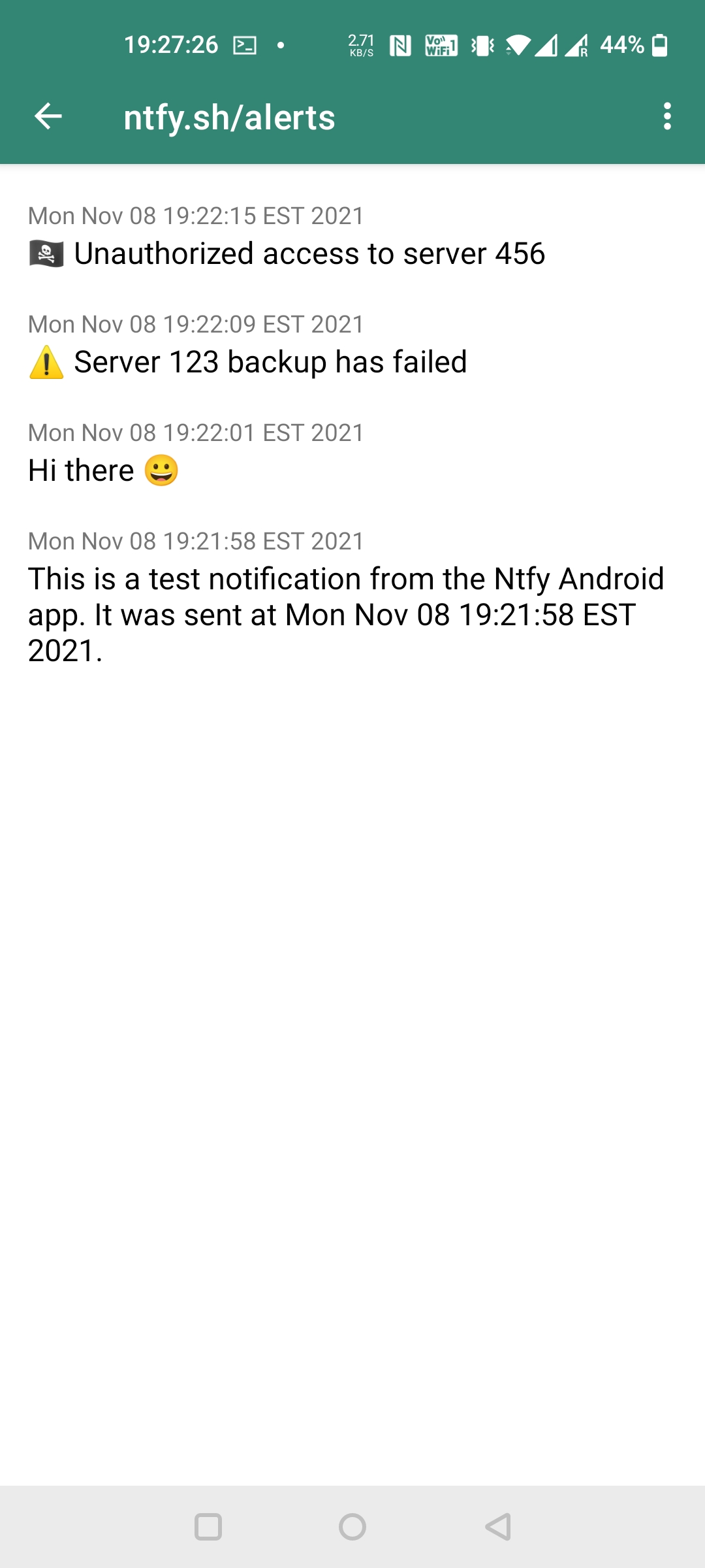 ntfy (pronounced "notify") is a simple HTTP-based pub-sub notification service. With ntfy, you can send notifications to your phone or desktop via scripts from any computer, without having to sign up or pay any fees. If you'd like to run your own instance of the service, you can easily do so since ntfy is open source.