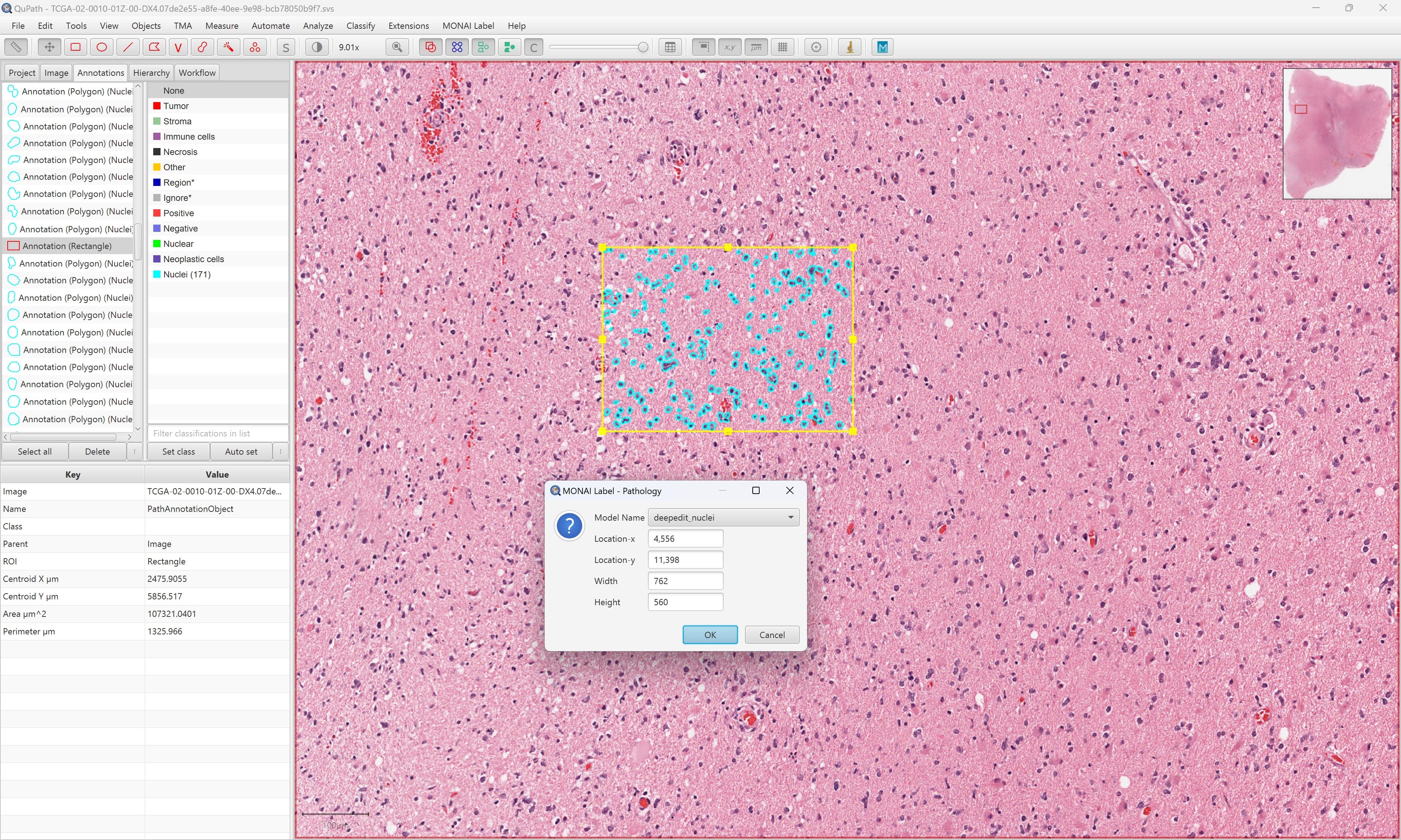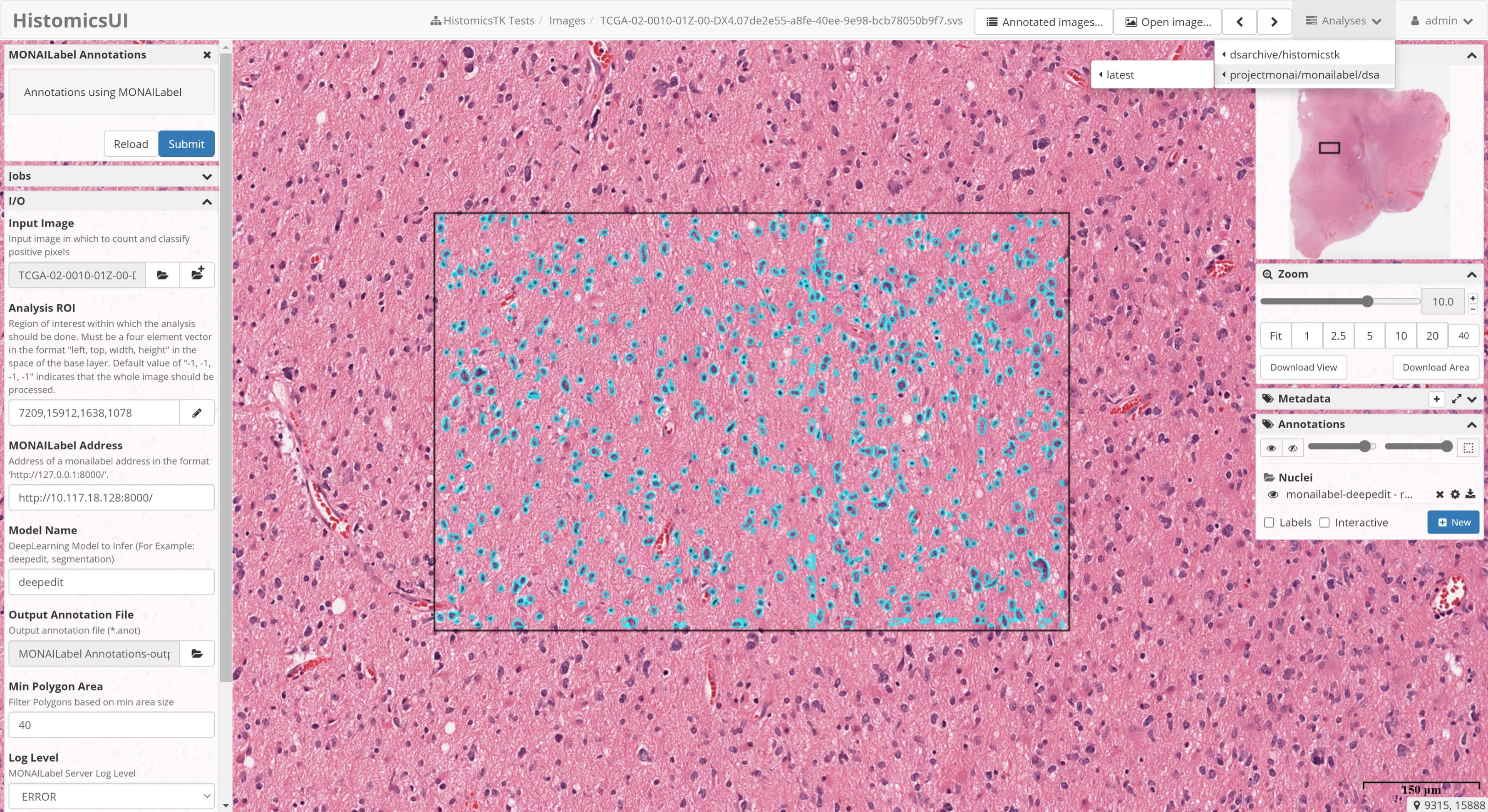 Install CVAT and enable Semi-Automatic and Automatic Annotation . Refer CVAT Instructions for deploying available MONAILabel pathology models into CVAT.