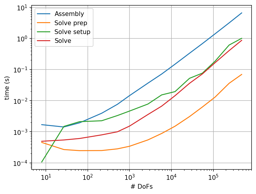 | DoFs | Assembly | Solve prep | Solve setup | Solve |