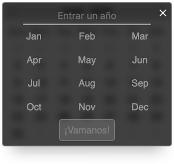 By clicking on the year or month an overlay will show revealing an input field and a list of months. You can either enter a year in the input, click a month, or both: