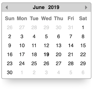 Want to show / hide the calendar programmatically with a button or by clicking some element? Make sure to use stopPropagation in your event callback! If you don't, any click event in the DOM will bubble up to Datepicker's internal oneHandler event listener, triggering logic to close the calendar since it "sees" the click event outside the calendar. Here's an example on how to use the show and hide methods in a click event handler:
