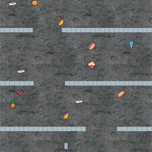 env_name- Name of environment, or comma-separate list of environment names to instantiate as each env in the VecEnv.num_levels=0- The number of unique levels that can be generated. Set to 0 to use unlimited levels.start_level=0- The lowest seed that will be used to generated levels. 'start_level' and 'num_levels' fully specify the set of possible levels.paint_vel_info=False- Paint player velocity info in the top left corner. Only supported by certain games.use_generated_assets=False- Use randomly generated assets in place of human designed assets.debug=False- Set toTrueto use the debug build if building from source.debug_mode=0- A useful flag that's passed through to procgen envs. Use however you want during debugging.center_agent=True- Determines whether observations are centered on the agent or display the full level. Override at your own risk.use_sequential_levels=False- When you reach the end of a level, the episode is ended and a new level is selected. Ifuse_sequential_levelsis set toTrue, reaching the end of a level does not end the episode, and the seed for the new level is derived from the current level seed. If you combine this withstart_level=<some seed>andnum_levels=1, you can have a single linear series of levels similar to a gym-retro or ALE game.distribution_mode="hard"- What variant of the levels to use, the options are"easy", "hard", "extreme", "memory", "exploration". All games support"easy"and"hard", while other options are game-specific. The default is"hard". Switching to"easy"will reduce the number of timesteps required to solve each game and is useful for testing or when working with limited compute resources.use_backgrounds=True- Normally games use human designed backgrounds, if this flag is set toFalse, games will use pure black backgrounds.restrict_themes=False- Some games select assets from multiple themes, if this flag is set toTrue, those games will only use a single theme.use_monochrome_assets=False- If set toTrue, games will use monochromatic rectangles instead of human designed assets. best used withrestrict_themes=True.