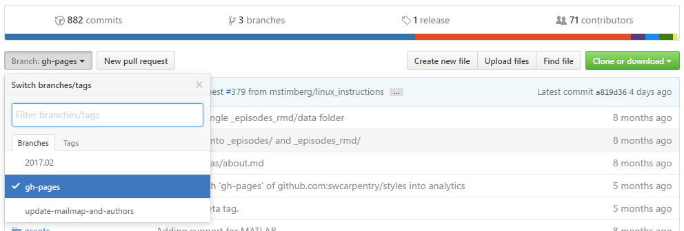 gh-pagesbranch, since that is what is automatically published as a website by GitHub. -