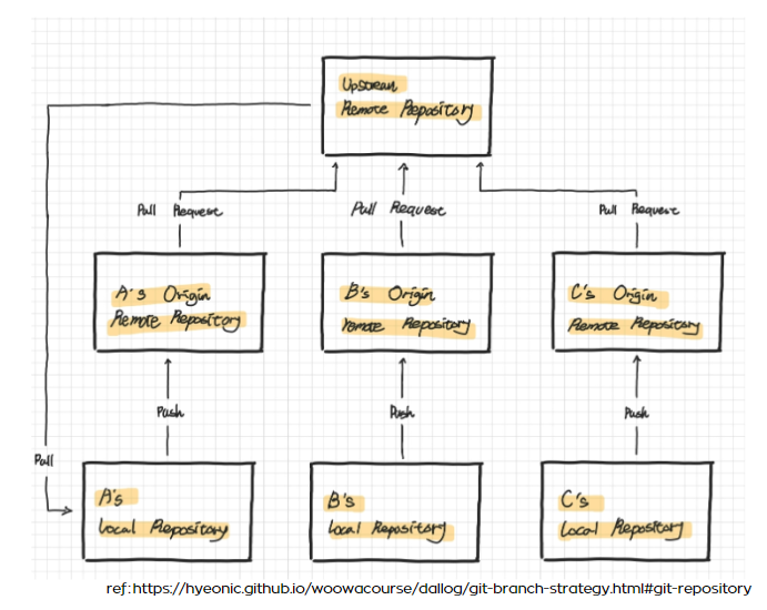 • 작업 변경 사항을 이제 Upstream Remote Repository에 반영해야합니다.