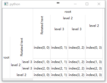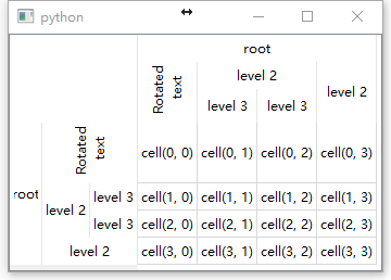 pyqt-HierarchicalHeaderView Python port of HierarchicalHeaderView install pip install PyQtHierarchicalHeaderView examples