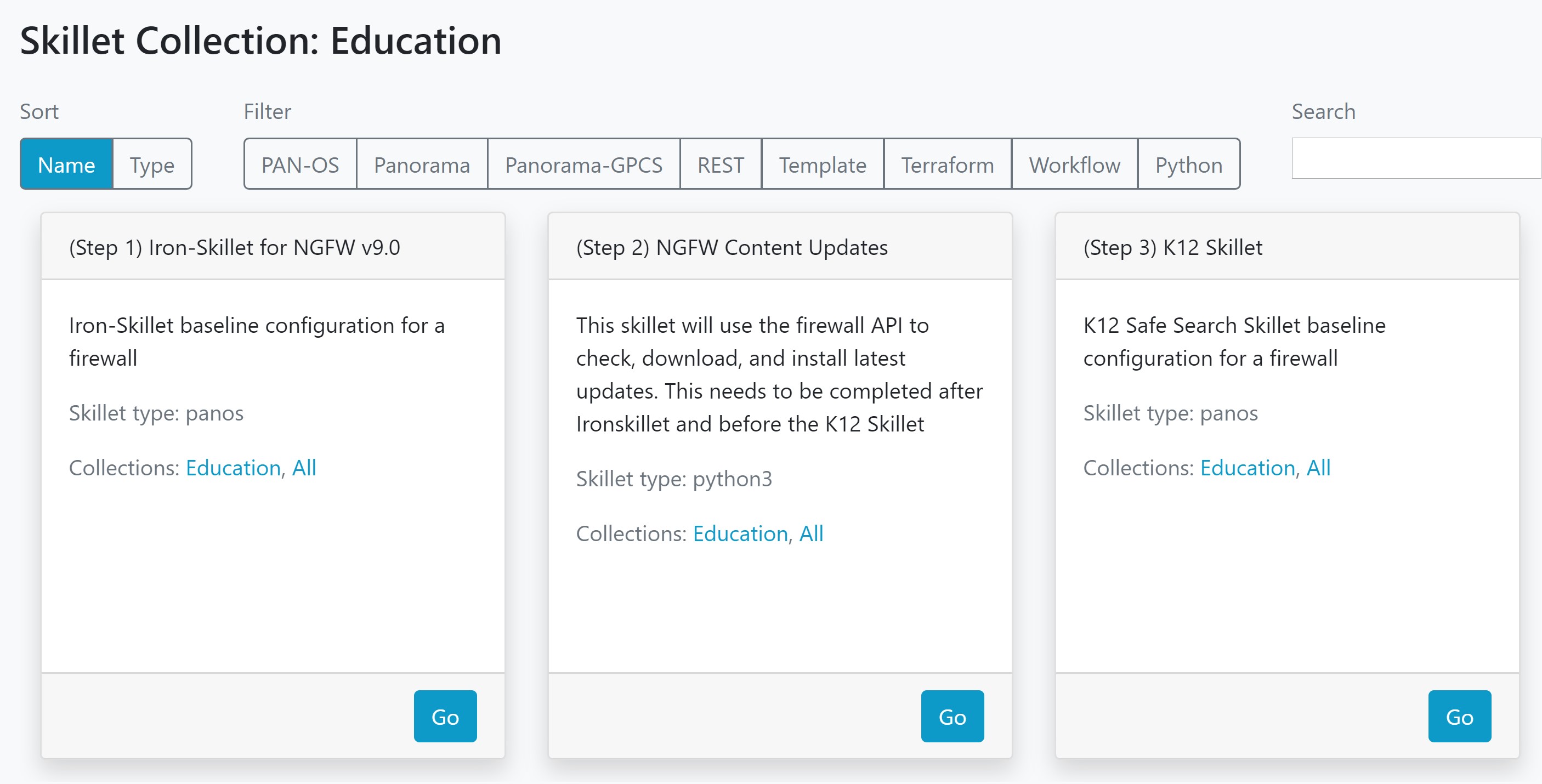 K12 Skillet is designed to be used with the panhandler application to API load structured configurations. It also captures web form data to semi-customize the configuration for local use.