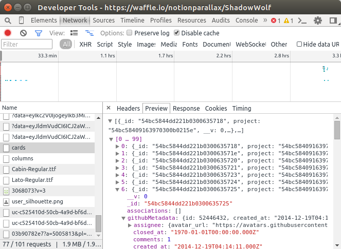 You need the cards json from the waffle page. You can get it by inspecting the page, going to timeline and waiting until the page has finished loading. It's just cards not cards.json. Copy the response body.