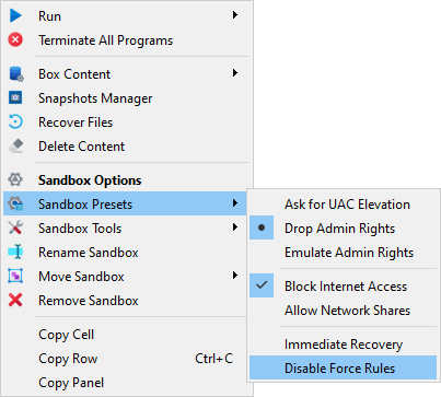[Plus 1.9.2] Adds option to toggle Disable Force Rules from the presets submenu#2851