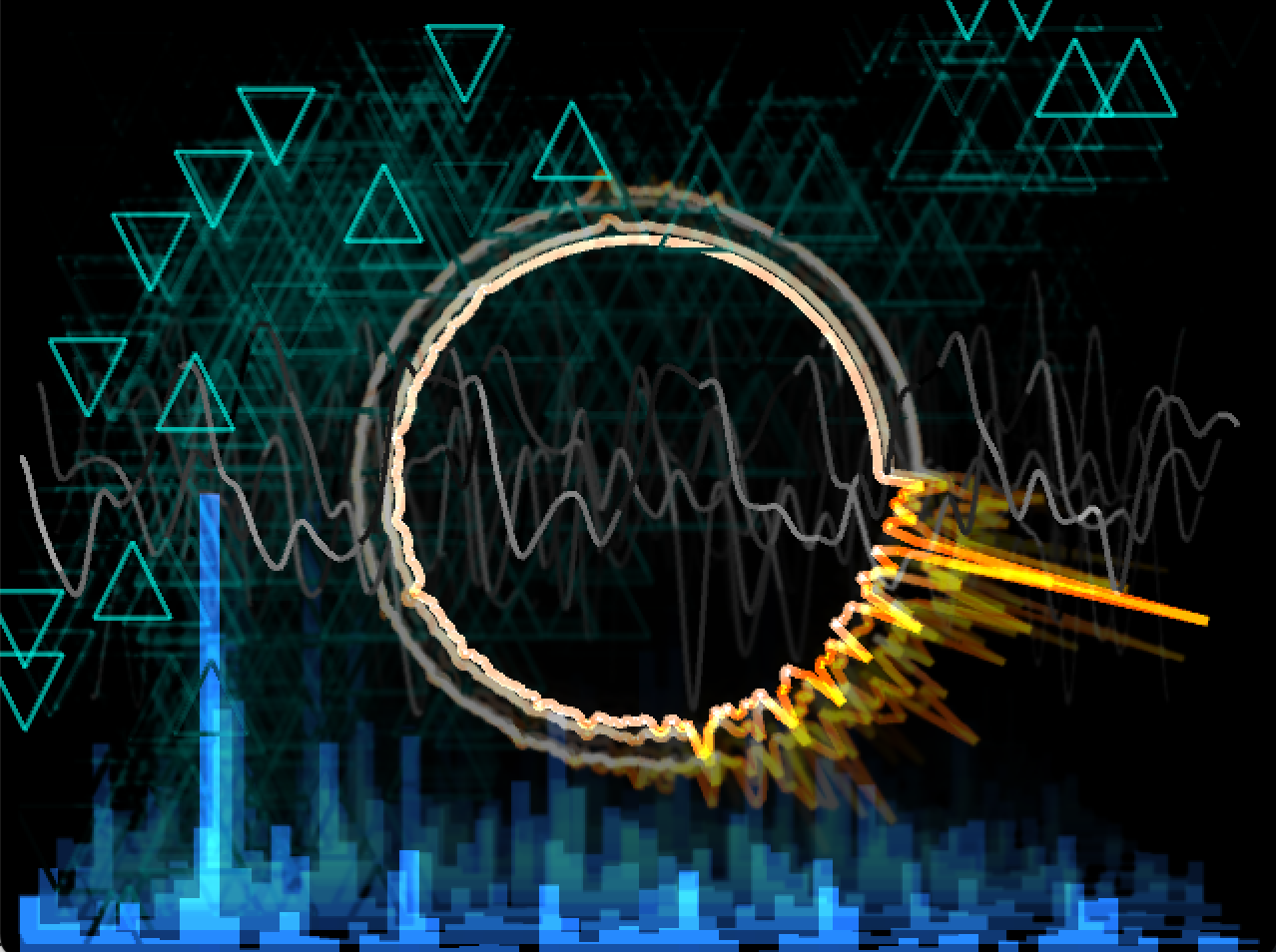 GuitarVisualEffects ギター(に限らずオーディオインターフェースを通した楽器)やマイクからの音声信号を様々なビジュアルエフェクトとして描画します。エフェクトの種類や描画順のカスタマイズが可能です。