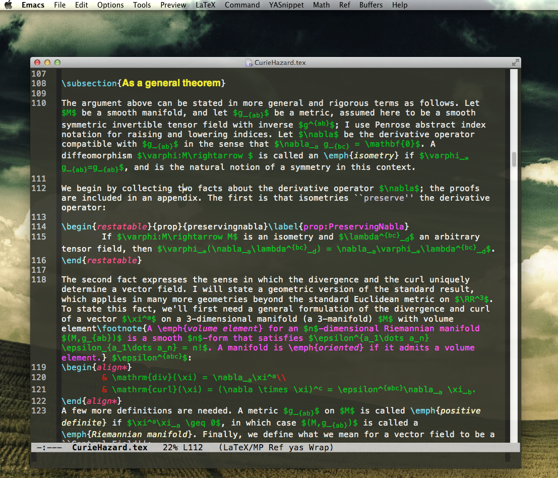 In what follows I describe my minimalist emacs installation on Mac OS X. To copy my setup exactly just follow the instructions below. Or pick and choose what you want. There are many roads to Emacs Zen.