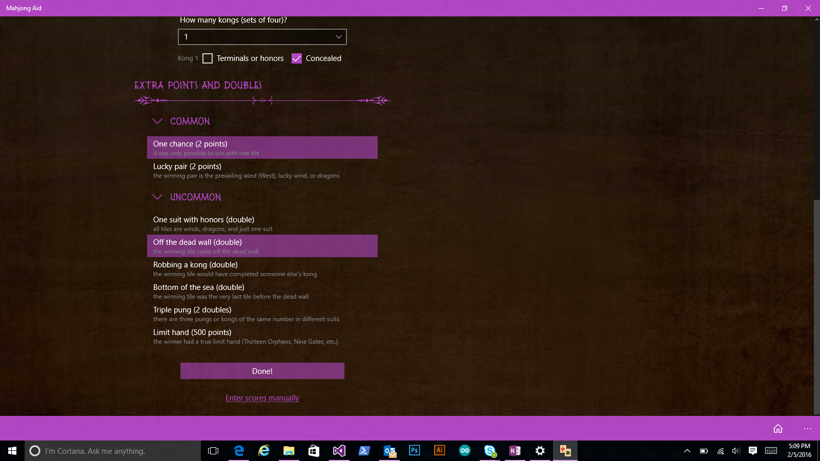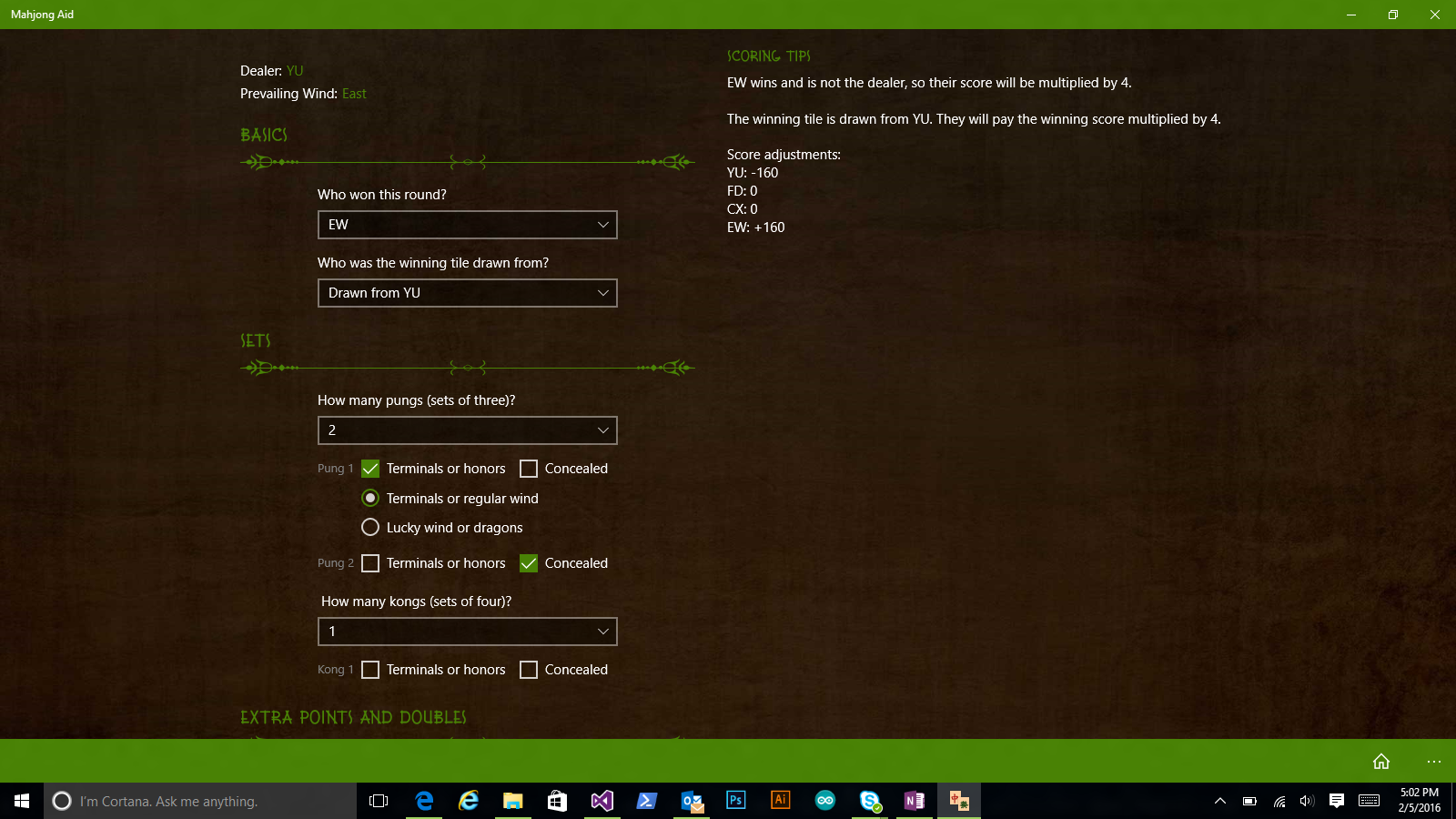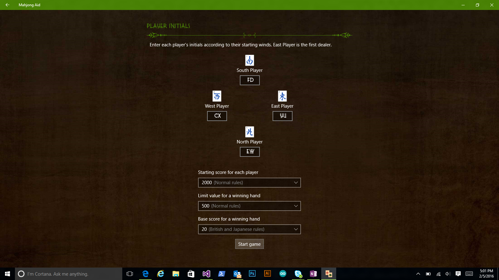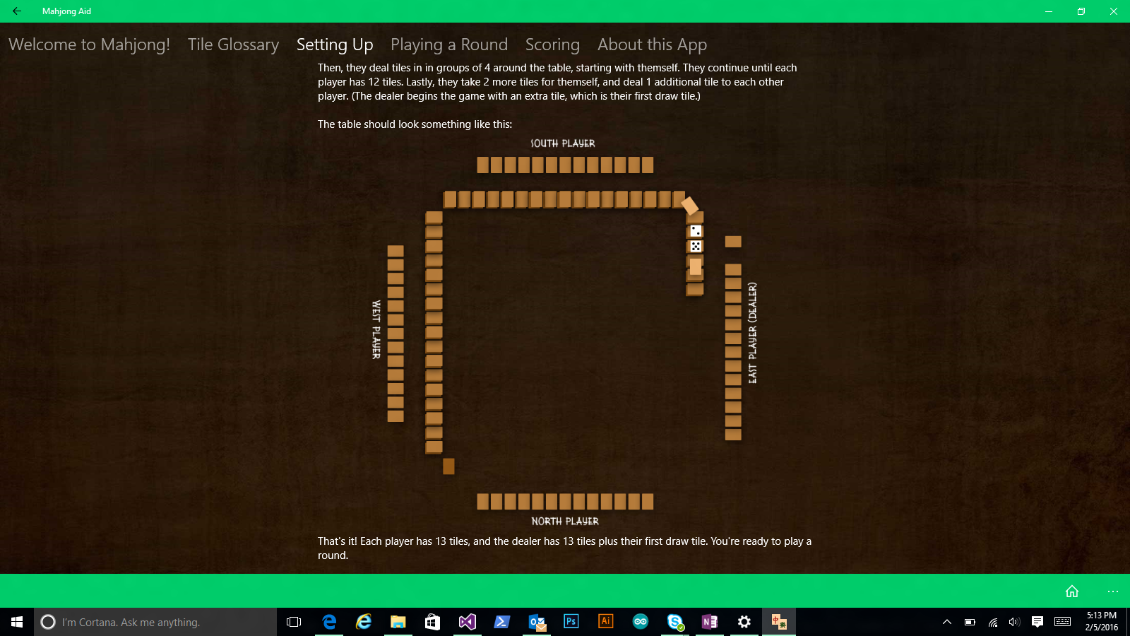 Mahjong Aid is an app that tracks ongoing Mahjong games, calculates scores for each round, and teaches you how to play!