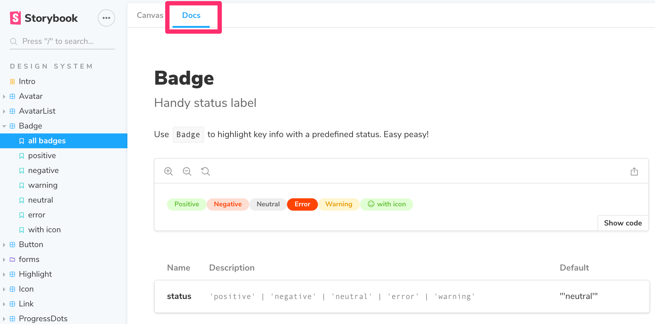 Storybook Docs