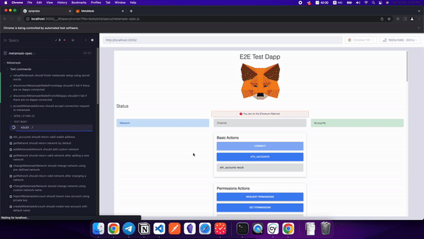 - One-Time Browser Setup & Caching: Define your dApps wallet setup once, and let Synpress cache the browser state. This dramatically speeds up test execution and unlocks the full potential of Playwright and Cypress, including parallel testing.