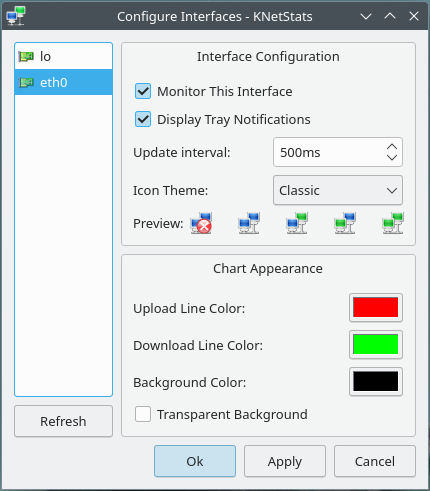 KNetStats is a simple Qt network interface and statistics viewer with an associated tray icon to monitor activity.
